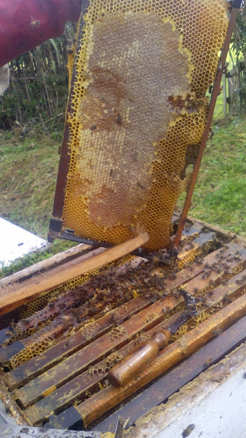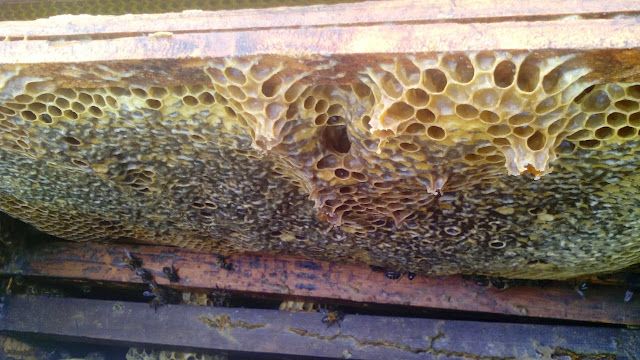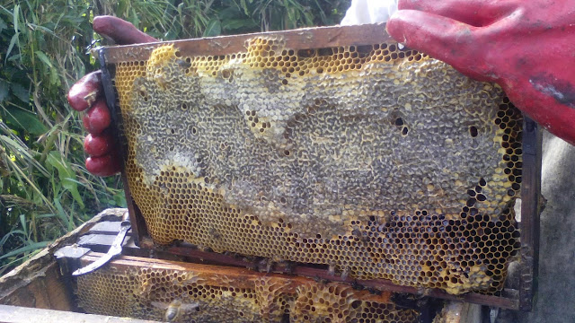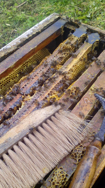 Quem me segue sabe que de vez em quando transformo-me em apicultora, hoje foi dia de mais uma destas transformações, e segundo o meu avô a ultima vez de 2014, isto porque agora só para abril de 2015 é que voltamos a abrir as colmeias para ver como se estão a portar as abelhinhas e se é necessário colocar mais cera.
