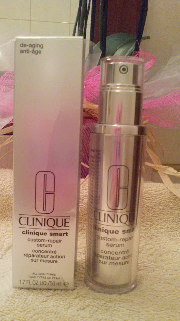 Clinique Smart Custom Repair Serum, tem nos seus activos 37 patentes internacionais e é o ex-libris dos séruns no mundo Clinique. É diferente dos outros porque se adapta às necessidades da nossa pele (todos diferentes, todos iguais) daí o nome "custom".