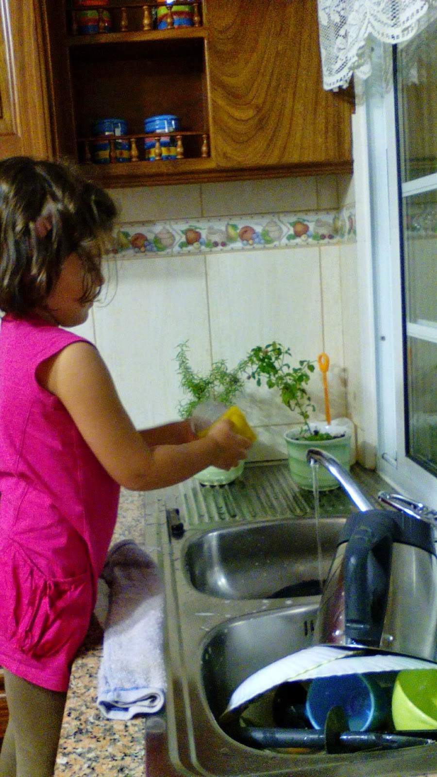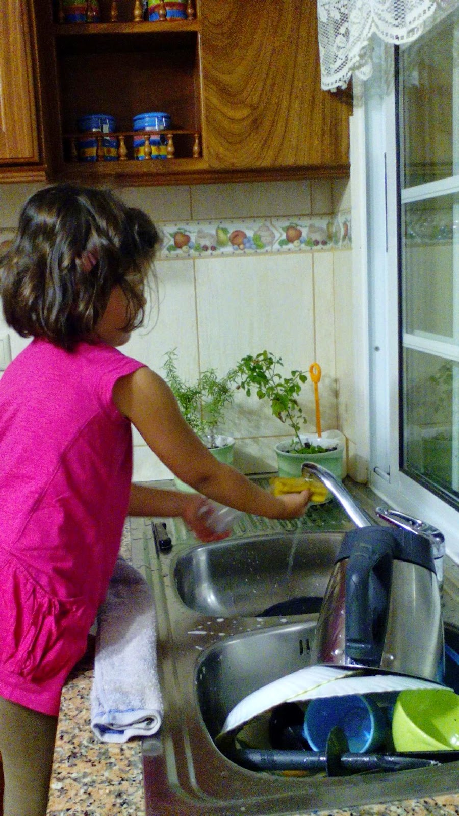 - Mãe estou a lavar a loiça, assim tens mais tempo para ir para o quarto dos brinquedos comigo!